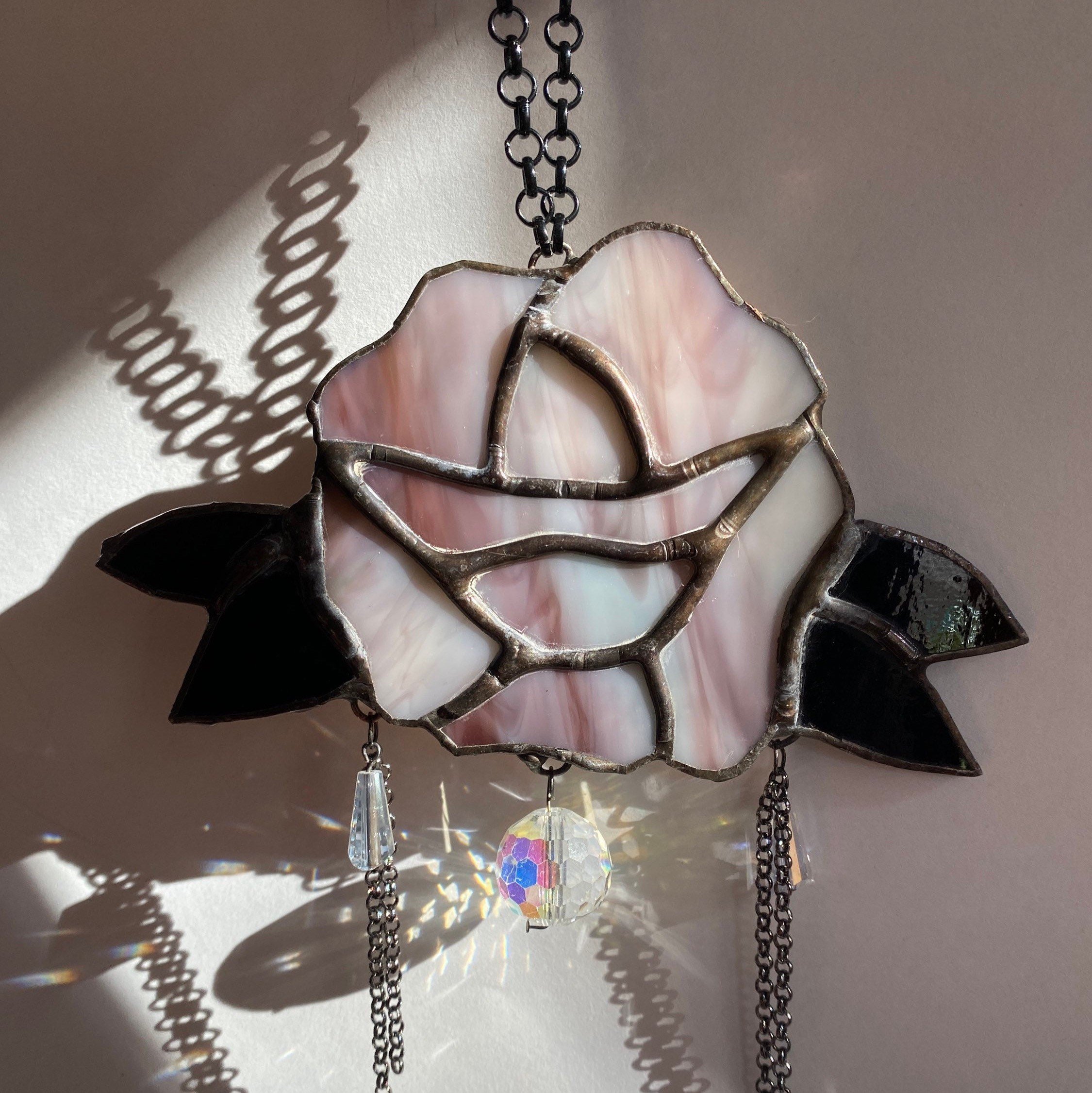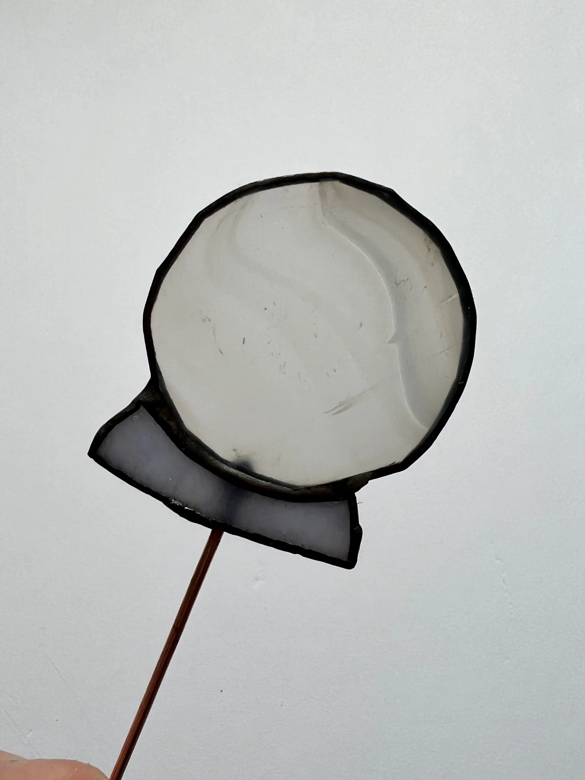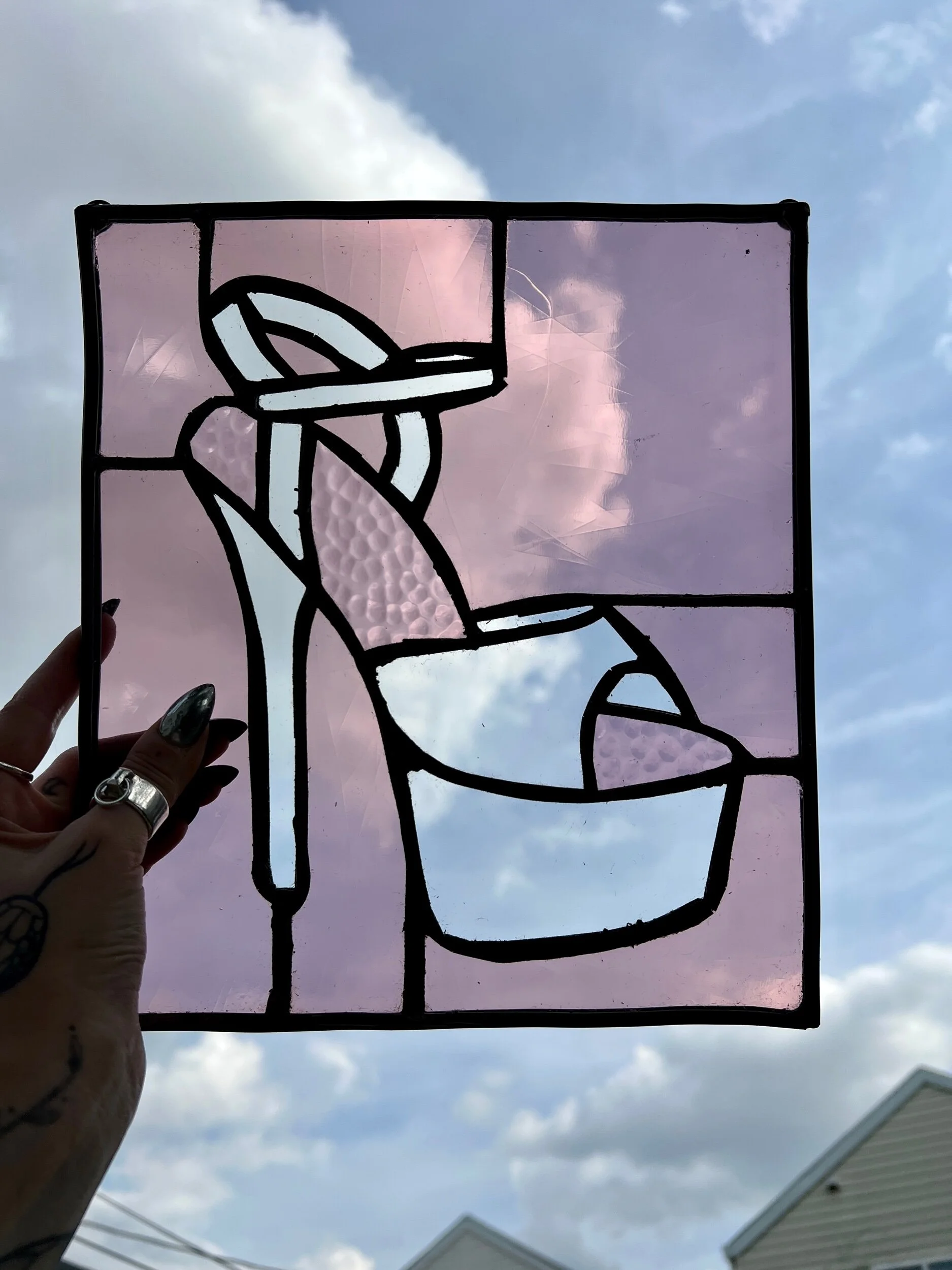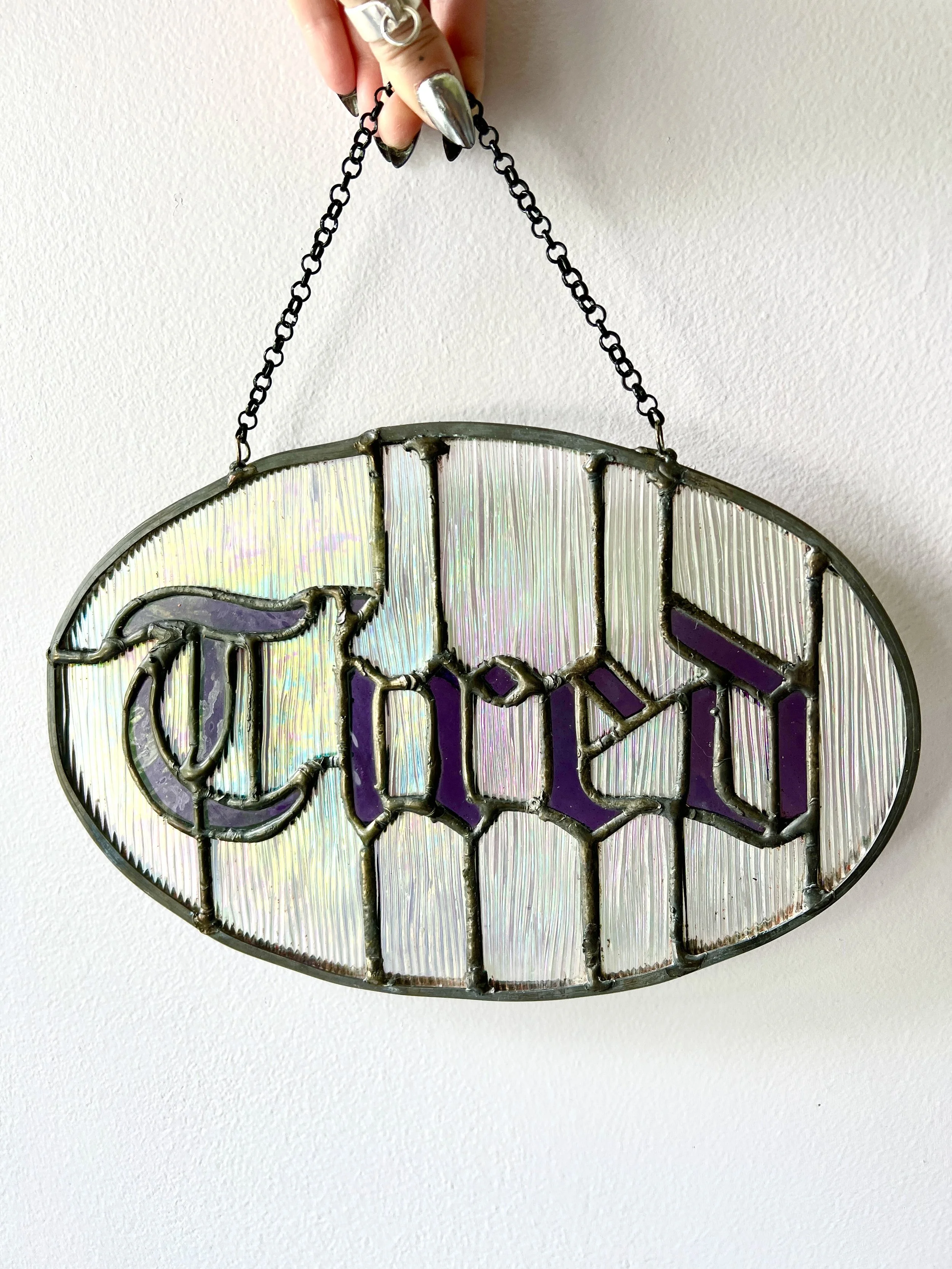 Pleaser Stained Glass Panel $250.00 Cherry wall panel $250.00 Crystal Incense Holder $50.00 Crystal Ball Plant Stake $30.00 Crescent Moon Plant Stake $30.00 Crystal Ball Plant Stake $30.00 Crystal Plant Stake $30.00 “Tired” Blackletter Stained Glass Panel $200.00 Sold out Crystal Ball $75.00 Sold out Bird Skull stained glass suncatcher $55.00 Sold out Edie Sedgwick Crying Eye 2” Sticker $2.00 White Stained glass Rose Suncatcher $50.00 Sold out Available Pieces